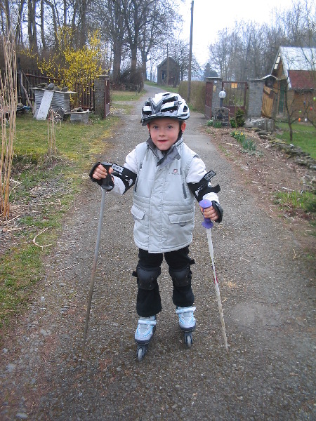 Mit Opi`s Skistöcken war ich der perfekte Inlinerfahrer!!!